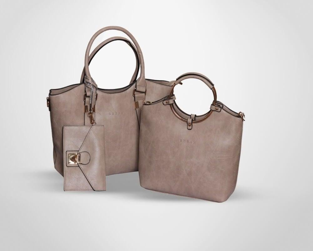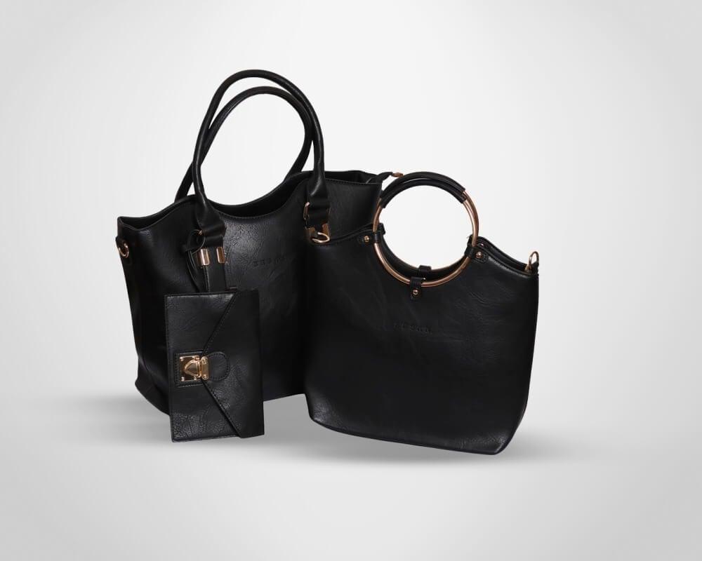 عدد القطع: 3 قطع (شنطة كبيرة، شنطة كتف، محفظة)