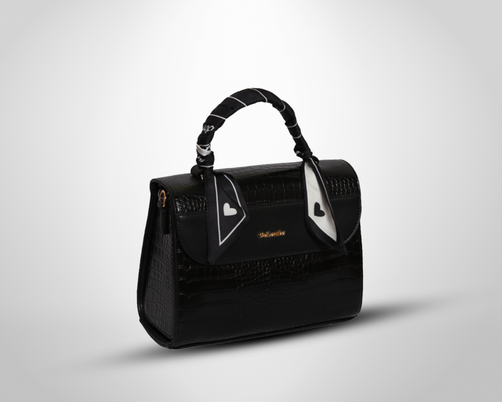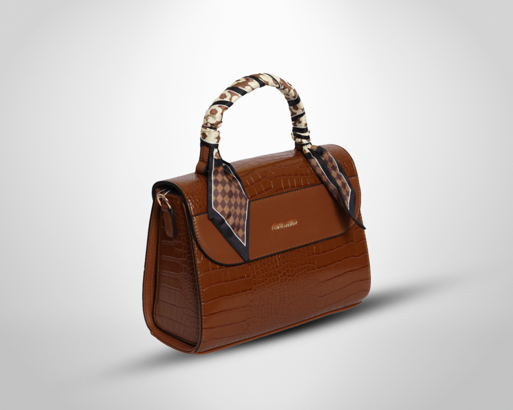 • مقبض مريح وأنيق مصنوع من الجلد وملتف بمنديل أنيق لإضفاء لمسة أنثوية وجمالية على الحقيبة.