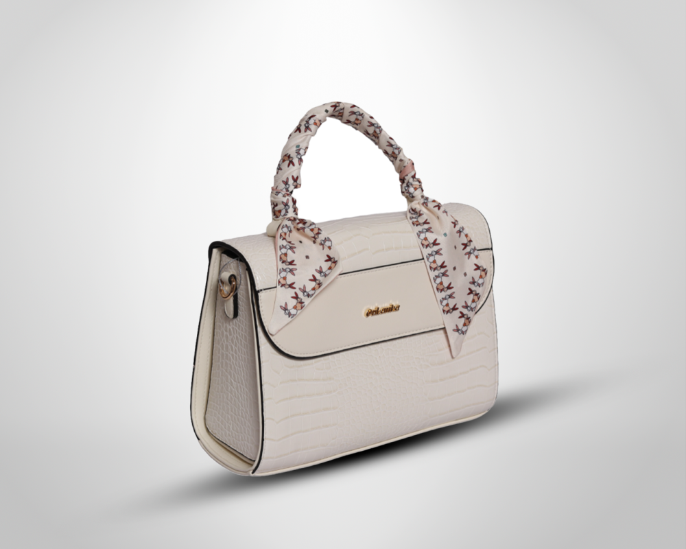 - مقبض مريح وأنيق مصنوع من الجلد وملتف بمنديل أنيق لإضفاء لمسة أنثوية وجمالية على الحقيبة.