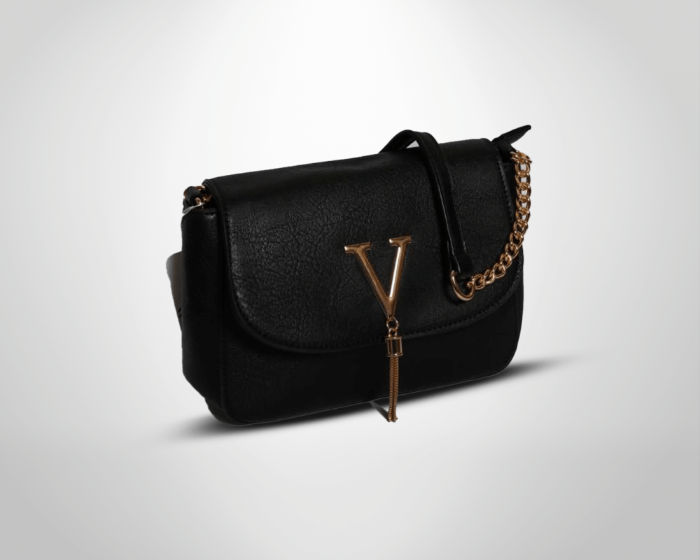 شنطة حريمي صغيرة مصممة لتكون الرفيق المثالي في كل مناسباتك و تتميز هذه الشنطة بتفاصيل فاخرة و دلاية ذهبية على شكل حرف V وتضيف عليها لمسة أنيقة وجذابة تناسب الطلات الكلاسيكية والعصرية.