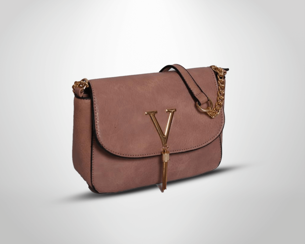 شنطة حريمي صغيرة مصممة لتكون الرفيق المثالي في كل مناسباتك و تتميز هذه الشنطة بتفاصيل فاخرة و دلاية ذهبية على شكل حرف V وتضيف عليها لمسة أنيقة وجذابة تناسب الطلات الكلاسيكية والعصرية.